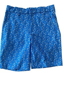 Vineyard Vines Boys Performance Shorts Size 12 Blue Fish Print Stretch Casual