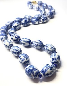 VTG Chinese Export Blue White Hand Painted and Knotted Necklace Box Clasp