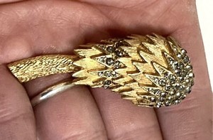 VTG ART DECO SUGAR BEAD Floral Spray BROOCH Gold Wash