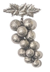 ANTIQUE Art Deco Chased Metal Figural GRAPES BROOCH Dangle Wide C-Clasp