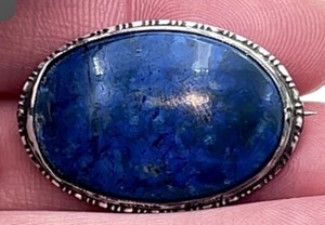Antique VICTORIAN Blue LAPIS LAZULI Sterling Silver BROOCH Vintage