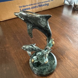 Bronze Dolphin And Baby Sculpture On Marble Base SPI San Pacific International