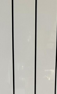 A pack of 4 White Gloss Black Strip Bathroom Cladding 250mm x 2700mm x 8mm