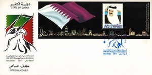 GCC Stamp Exhibition 2011 UAE Abu Dhabi Rare Qatar Stamps Cover Falcon Flag King