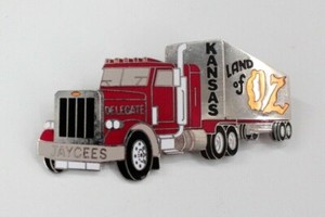 Vtg 1980s Kansas Jaycees Trucker Red Semi Truck Pin Metal Pinback 80s