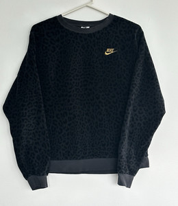Nike Sweatshirt Medium Black Fleece Leopard Gold Swoosh Gorp Sporty Plush Casual