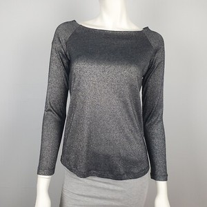 HUSH Size M, 12 Metallic Silver Glitter Top Blouse 3/4 Sleeve Scoop Neckline