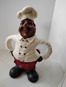 Vintage Black Chef Wine Bottle Holder Holds Two Bottles 12.5" Tall Rare