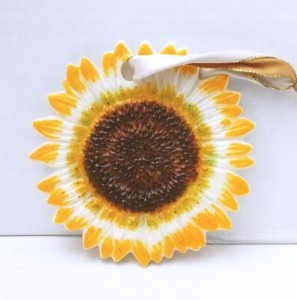 Sunflower Fused Art Glass 6.5 Inches Suncatcher Hanging Yellow Brown White