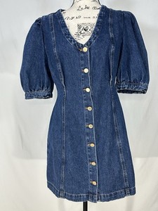 Zara Denim Puff Sleeve Button-Up Mini Dress Large 80’s Classic Bohemian Coastal