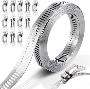 Hose Clamp Kit DIY 9.8 Feet Metal Strap + 12 Stronger Fasteners Large Adjustable