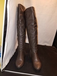 NWOB US6 Charlotte Russe DARK BROWN FAUX LEA. KNEE HIGH ALMOND TOE DRESS BOOTS