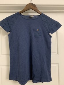 NWOT ZARA Girls Kids Blue Embroidered Cap Sleeve Pocket School Cute Top Shirt 10