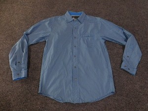ExOfficio shirt mens Small blue plaid lightweight travel outdoor snap