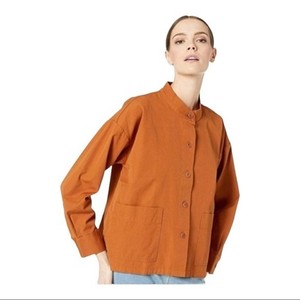 Eileen Fisher Women's Orange Cotton Mandarin Collar Button Front Jacket L/G X2