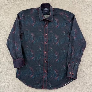 Marcello Shirt Mens Medium Blue Paisley Long Sleeve Preppy Button Up Casual