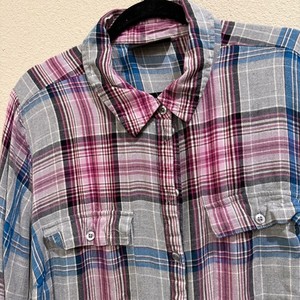 American Eagle Womens L Flannel Shirt Hooded Patchwork Plaid Button Up