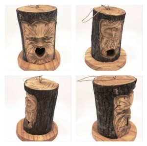 Wooden Carved Bird Box Nesting House Birdhouse Green Man Garden Carving