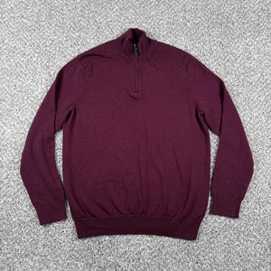 Jos A Bank Sweater Mens Medium Burgundy Traveler Merino Wool Quarter Zip Knit