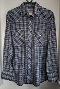 Vintage Frontier Blue/Black Check Western Shirt Pearl Snaps 44"-112cm M 313WR)
