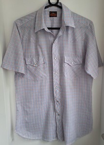 Vintage Western Fashions Check Western Shirt Pearl Pop Studs 44"-112cm M (218WR)