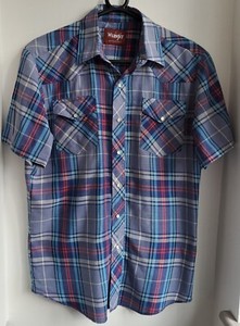 Vintage Wrangler Blue Check Western Shirt Pearl Snaps 44"-112cm M (206WR)