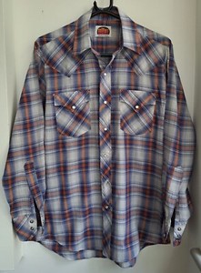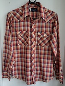 Vintage 1970's Sears 'Put on Shop' Check Western Shirt 42"-106.5cm M (209WR)