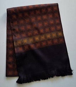 Vintage 50/60s Men's Fringed Geometric Patterned Silk Style Evening Scarf (12E)