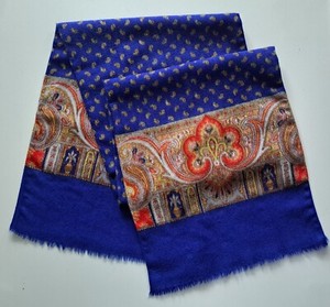 Vintage 60s Men's Fringed Blue Paisley Patterned Wool Scarf (7E)