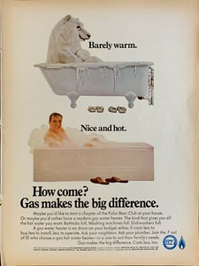 Vintage 1968 Gas Water Heater Bear In Tub Man In Tub Print Ad Advertisement