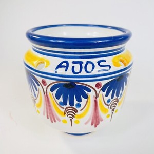 Ceramic Hand Painted Made in Spain Multi Color Garlic Keeper Jar w/o Lid