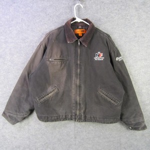 CornerStone Work Jacket Mens Large Black Corduroy Collar Zip Canvas Embroidered
