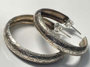 Vintage sterling silver '925' scroll engraved hoops hooped earrings stacking