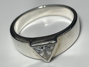Sterling silver 925 and triangular clear stone ring 5g band size M 1/2 stacking