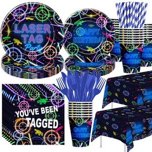 Laser Tag Birthday Party Decorations Tableware - Neon Glow Shooting Game Them...