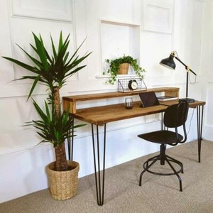 Rustic Reclaimed Desk w. Monitor Shelf, Choice of Trapezium/Hairpin Legs +Finish