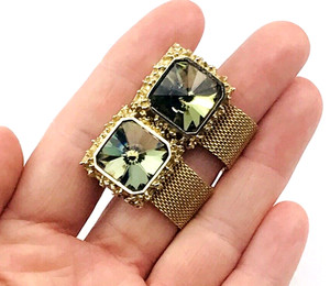 Vintage Green Signed Dante Rivoli Wrap Cufflinks Nugget Look Mesh Oversized
