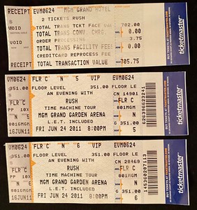 (2) RUSH R30 Concert Tour Full Tickets MGM Grand Unripped Adjacent