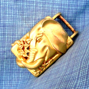 Sculptural Elephant Dress Belt Buckle Pachyderm Vtg B Kieselstein-Cord .NOX557