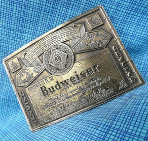 Budweiser Beer 12 oz Label Promo Belt Buckle Vintage 70s Lewis Buckles .CPA323