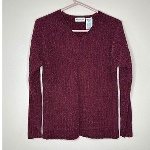 White Stag VTG NWT V-Neck Sweater Ribbed Knit Long Sleeve Burgundy Pullover L