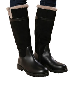 Knee High Warm Lined Boots Womens UK 6 Black Faux Leather Suede Low Heel Chunky