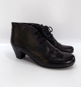 Pavers Boots Womens Black Low Block Heel Lace Up UK 4 Brogue Victorian Steampunk