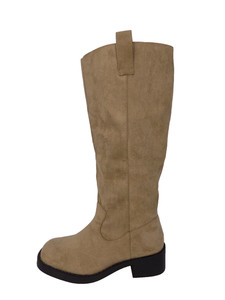Brown Faux Suede Knee High Boots UK 8 Camel Low Heel Square Toe Classic Style