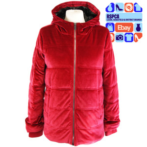 Brekka Milano Red Velvet Velour Hooded Puffer Coat Size S
