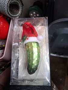 5.5" Christmas Pickle with Santa Hat Figurine Glass Food Ornament Pickleball