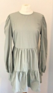 Missguided Sage Green Long Puff Sleeves Short Tiered Dress Size 14 (Small) BNWTs