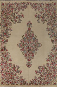 Vintage Floral Kirman Medallion Area Rug 8x11 Wool Hand-knotted Living Room Rug