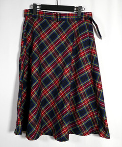 Allegra K Womens Academia Tartan Plaid Belted Midi Skirt Sz M Preppy Schoolgirl