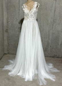 Watters Crystal Embroidered Tulle White Beige Nude Long Wedding Gown Dress US 2